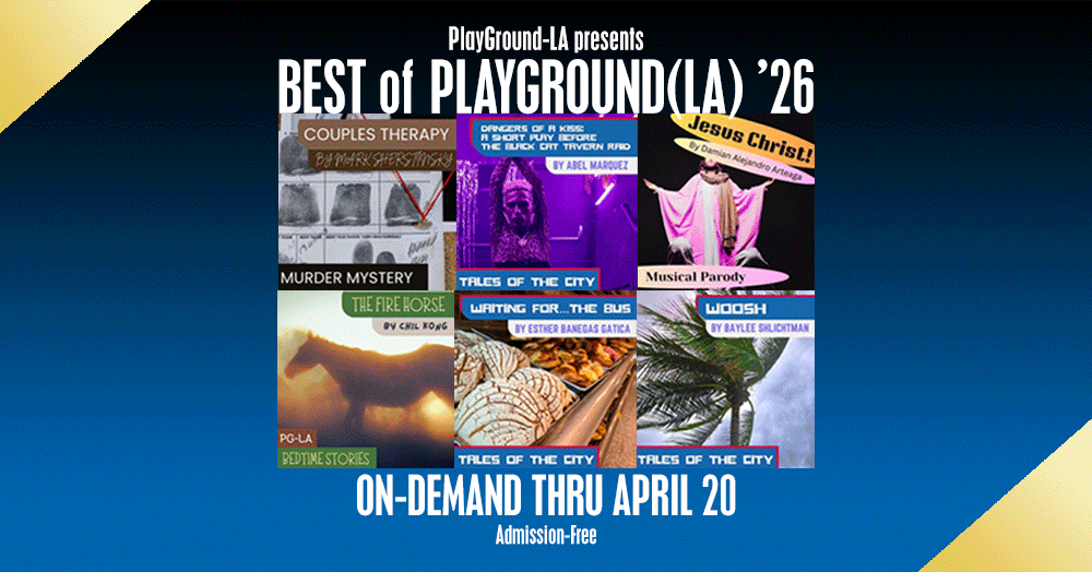 PlayGround-LA presents Season 14 BEST OF PLAYGROUND(LA) ’26 April 6th, 2026 7pm PT The Broadwater Second Stage & Vimeo Live Simulcast ACKNOWLEDGING THE LEGACY OF THE LAND WE INHABIT PlayGround-LA acknowledges that we are on the unceded ancestral homeland of the Chumash, Tongva, and Kizh (“keech”), the original inhabitants of Los Angeles. As the past […]
