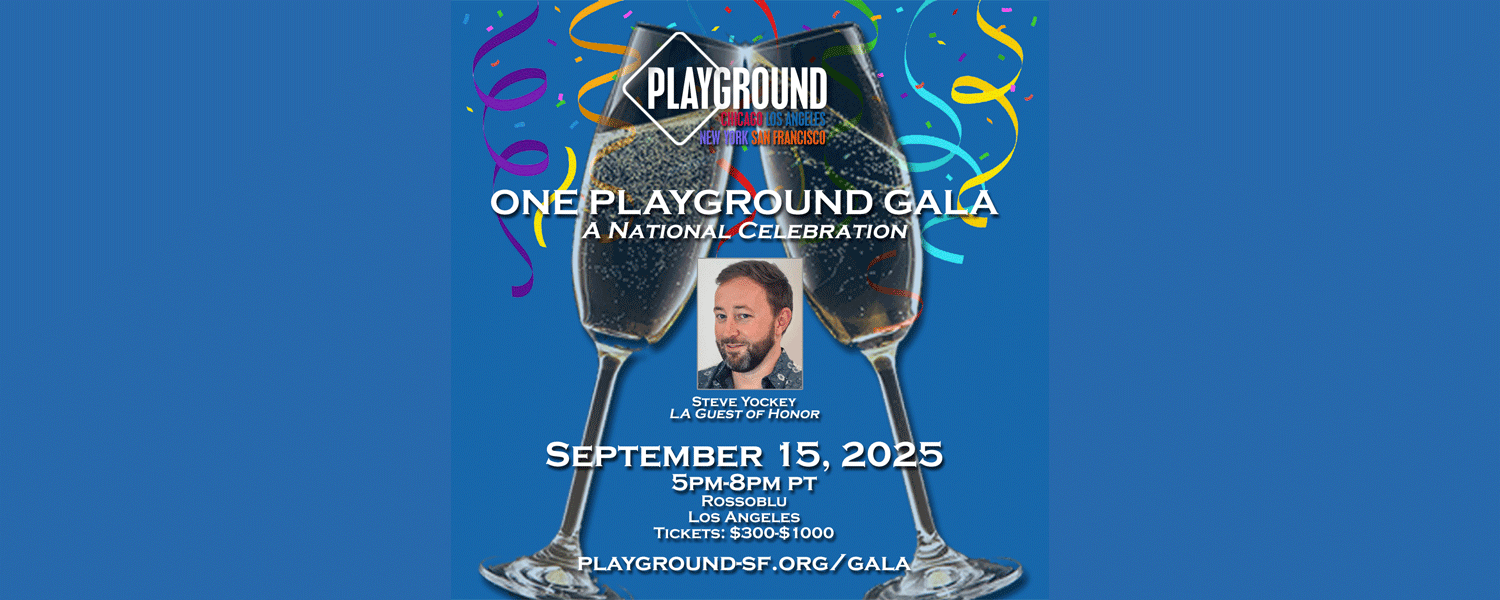 On the third Monday each September, PlayGround brings together its vibrant community of artists and supporters that spans the nation for a very special evening: the annual One-PlayGround Gala. Held simultaneously across San Francisco, Los Angeles, Chicago, and New York, the One-PlayGround Gala is more than just a dinner. It’s a way for attendees to connect with theatermakers and supporters across time zones in one shared night of celebration and support for all that PlayGround does.