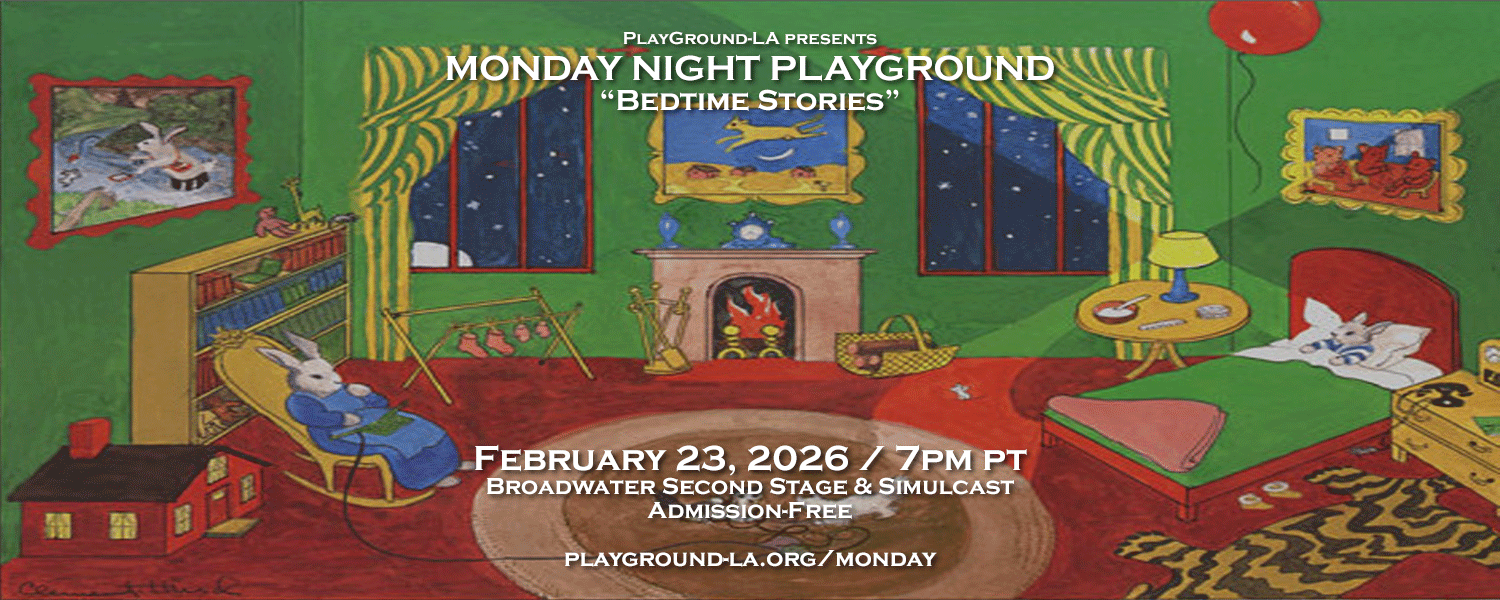 PLAYGROUND-LA is the first regional expansion of the celebrated Bay Area playwright incubator and theatre community hub, PlayGround. PlayGround was launched in San Francisco in 1994 by co-founders Jim Kleinmann, Brighde Mullins and Denise Shama. In 1996, Kleinmann became PlayGround’s first Artistic Director. Since its founding, PlayGround has developed and staged over 1,000 original ten-minute plays by 250 Bay Area and Los Angeles early-career writers and has commissioned/developed more than 100 full-length plays. In the process of staging those works, PlayGround has helped to identify some of the leading emerging writers and, at the same time, has engendered the creation of a true community of theatre artists, bringing together hundreds of local actors, directors and playwrights. Each month, Oct-Mar, PlayGround-LA announces a topic to the thirty-six writers of the PlayGround-LA Writers Pool. Writers have four-and-a-half days to generate their original short plays and the top six are cast with leading local professionals and rehearsed for just 1.5 hours before being presented as script-in-hand staged readings on the second Monday of the month via Zoom live stream. At the end of each season, six of the thirty-six works developed in the Monday night series are selected for a one-night celebration, the Best of PlayGround. The 13th annual Best of PlayGround Gala will take place on Monday, April 14, 2025, live at the Broadwater Theaters and simulcast via Vimeo Live. For more information, visit http://playground-la.org.